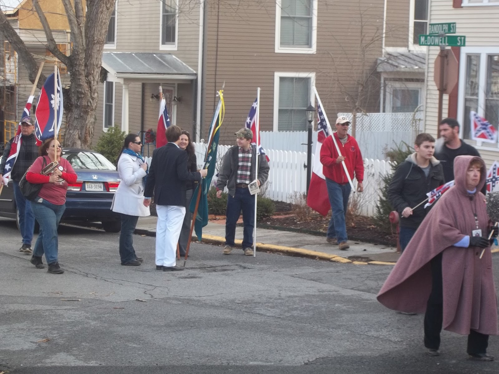 I am pleased to report that this year the number of people who stood to watch the parade and cheer those assembled was double what it was the previous year - in large part due to the somewhat milder weather. Several cadets from the nearby Virginia Military Institute where Jackson once served as a teacher prior to the War Between The States and some students from Washington and Lee University came by to pay respect to their Confederate heritage and Southern identity.