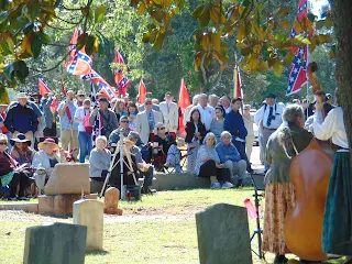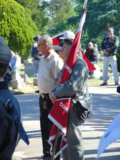 On the following Saturday, the main services begin at Columbia's Elmwood Cemetery at the Confederate Soldiers' section of the cemetery. There are over two hundred Confederate soldiers -- many of them Unknown -- buried there, though only about 170 of them actually have tombstones. The rest are buried there, but their exact graves remain unknown, a sad story I will touch upon in a future blog post.