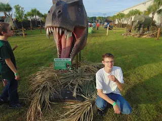 Despite the weather, which was largely overcast with a couple of light drizzles, the boys had a wonderful time. They enjoyed the rides of course, but they also enjoyed the other events offered at the fair, including the handicrafts, the food, the animals, the famous annual SC State Fair sand sculpture, and other displays -- including the return of the dinosaurs!